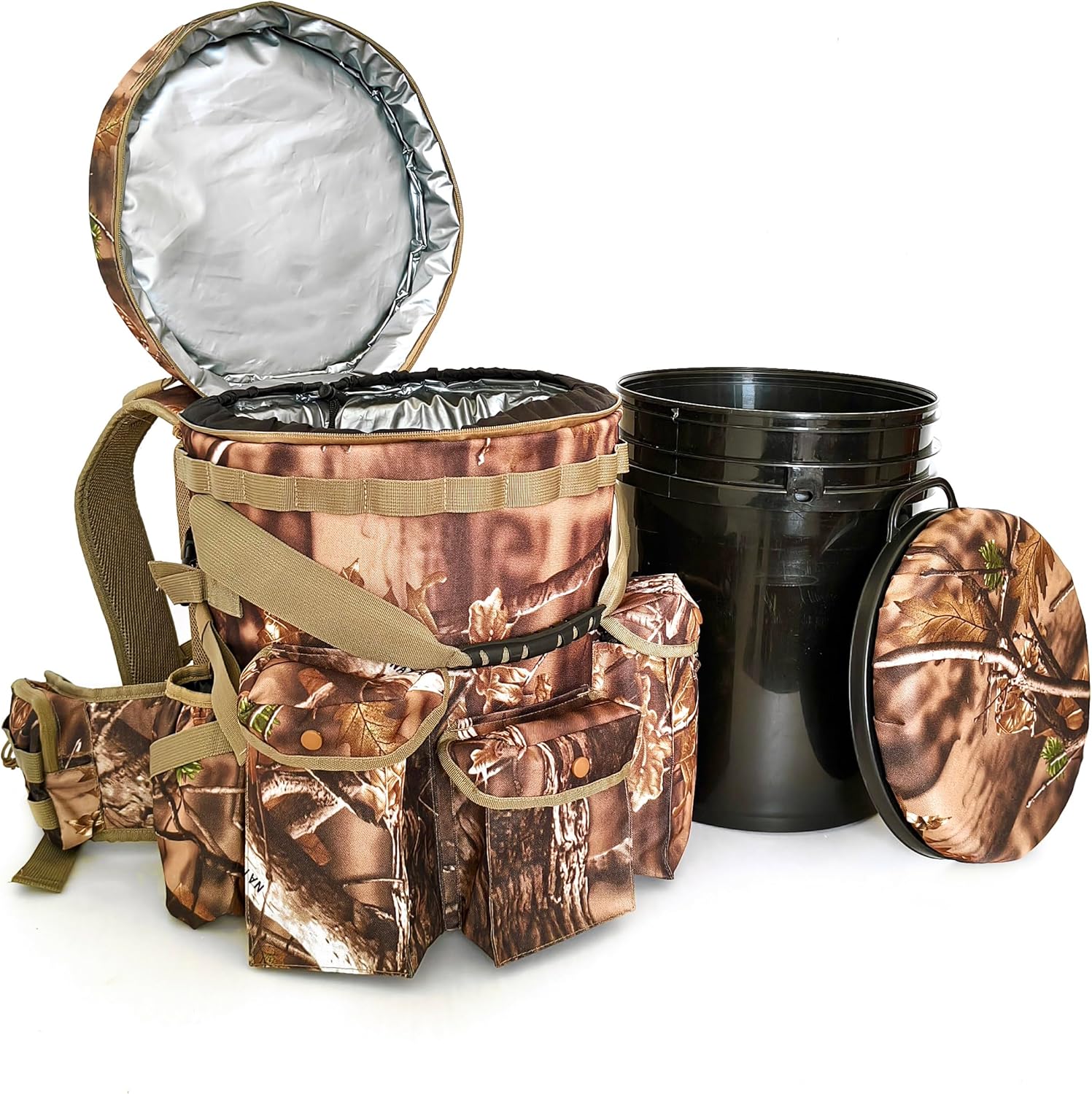 I actually bought a camo 5 gal bucket seat back pack for a seat and storage on Amazon.